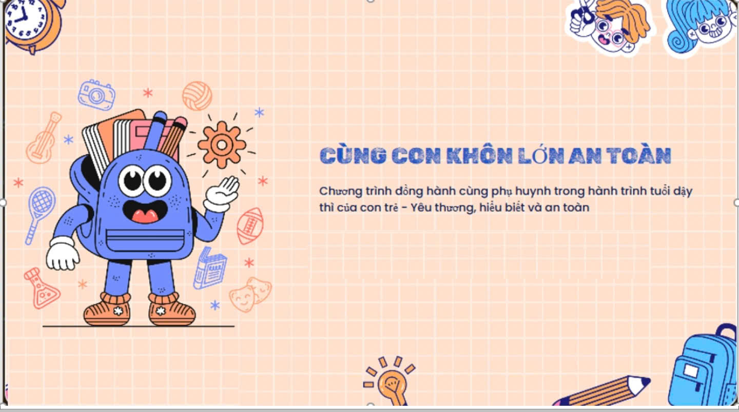 Trong hành trình trưởng thành của mỗi học sinh, gia đình và nhà trường luôn là hai điểm tựa quan trọng nhất. Nhằm đồng hành cùng quý phụ huynh trong việc trang bị cho các em những kỹ năng cần thiết để phát triển lành mạnh, an toàn và tự tin, nhà trường triển khai chuyên đề “Cùng con khôn lớn an toàn”.