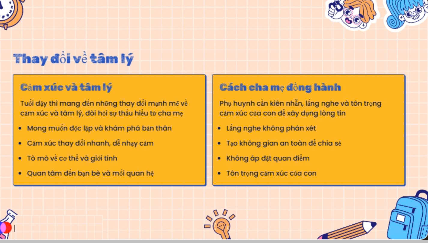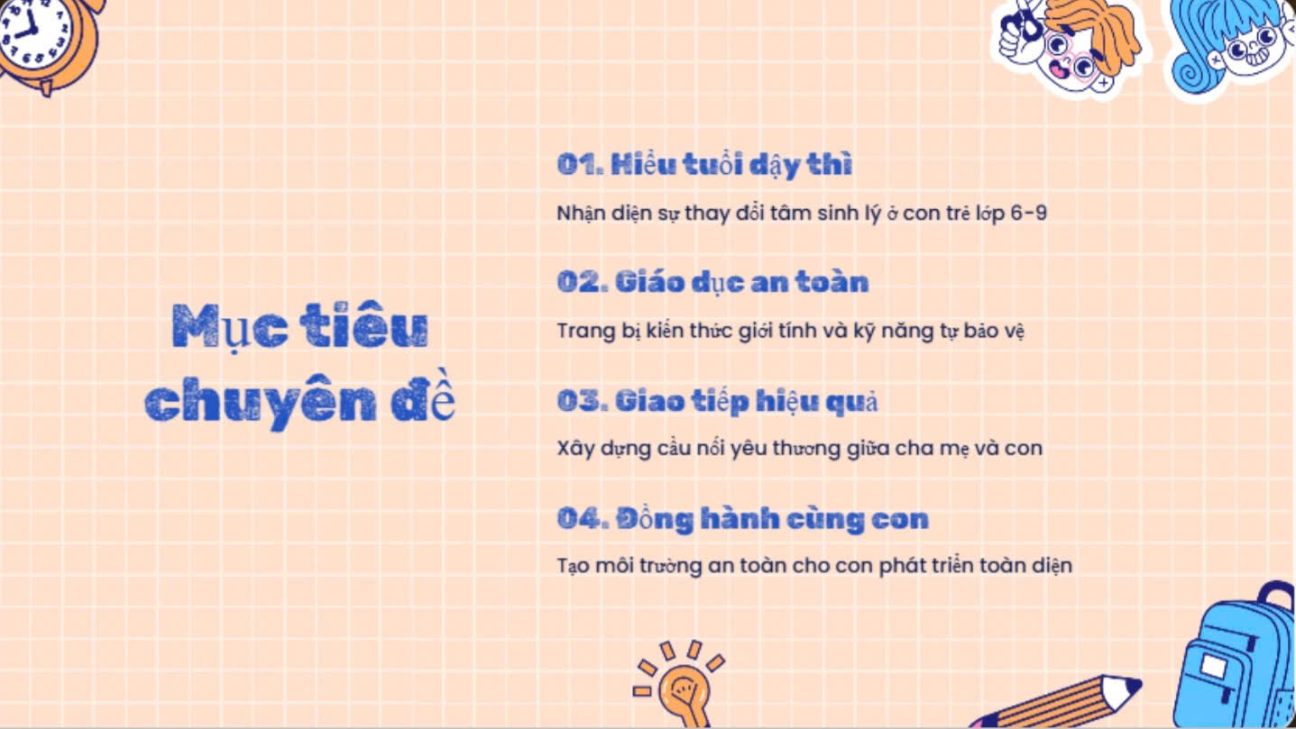 Chuyên đề hướng đến việc giúp cha mẹ thấu hiểu tâm lý lứa tuổi, nhận diện sớm những nguy cơ tiềm ẩn, tăng cường kỹ năng bảo vệ bản thân cho học sinh, đồng thời tạo nên sự kết nối chặt chẽ giữa gia đình – nhà trường – học sinh trong quá trình giáo dục.